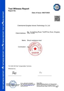 - 耐衝撃試験が実施されており、「Test Witness Report(立会試験報告書)」として、TÜVの技術者立ち会いのもとで試験が実施され、判定を受けています